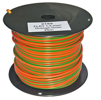 Die orange-grüne Verdrahtungslitze 1,50qmm ist alternativ auch als Meterware verfügbar.