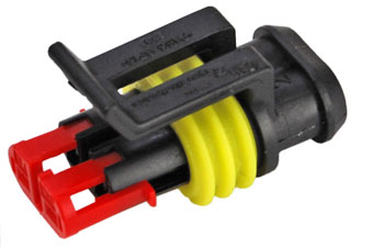 Einzelnes zweipoliges Buchsengehäuse ohne Kontakte und Einzelleiterabdichtungen aus dem SUPERSEAL-1,5-System