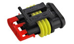 Einzelnes zweipoliges Buchsengehäuse ohne Kontakte und Einzelleiterabdichtungen aus dem SUPERSEAL-1,5-System